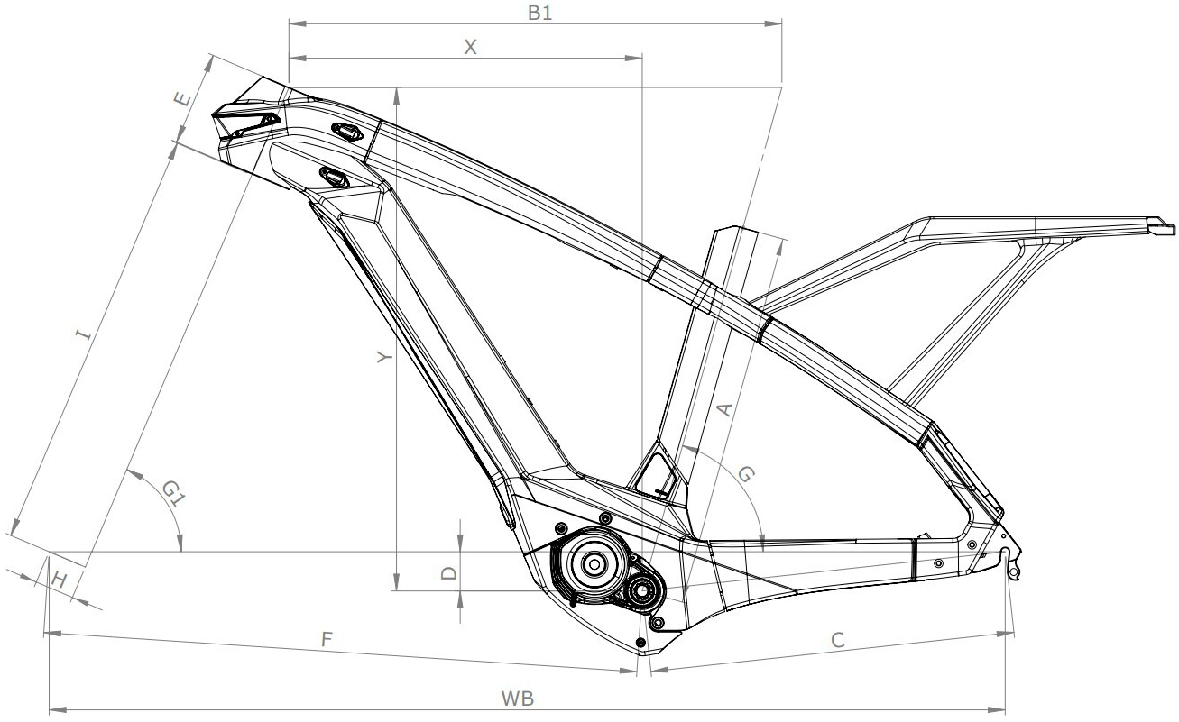 e-OMNIA T-Type ALU, sizes: 43, 48, 53, 12x148 mm thru axle dropouts (special dropout for external derailleur), Post mount 180 disc brake type, Frame lock compatible, custom rear carrier integrated in the frame design