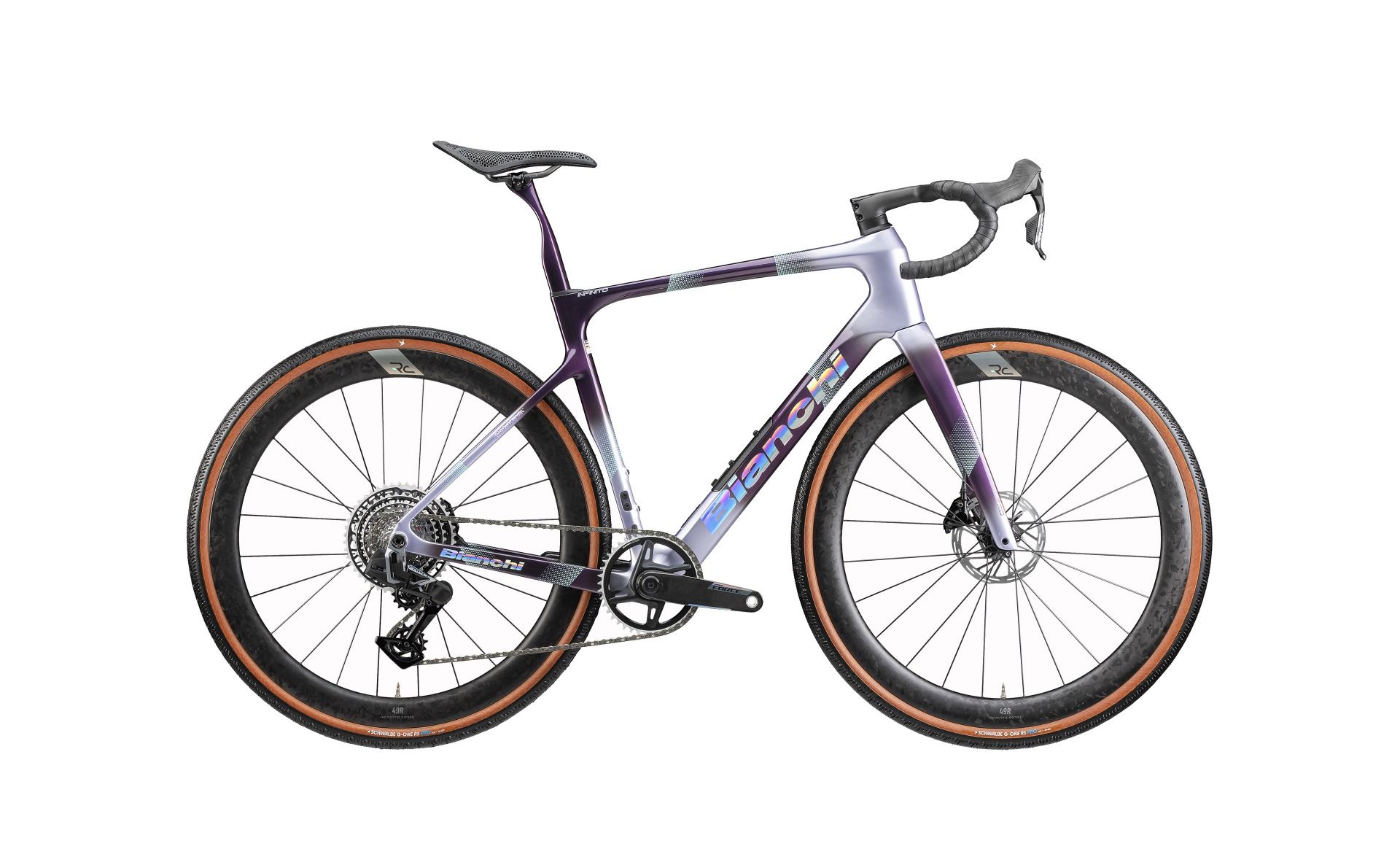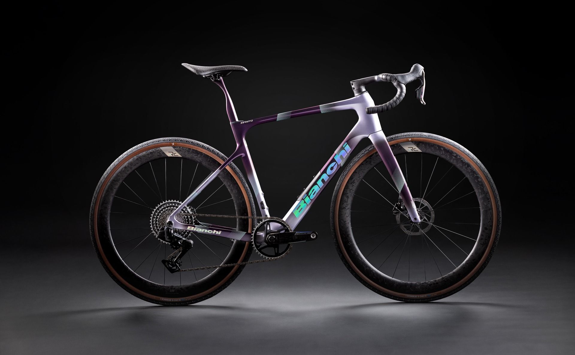 Bianchi Infinito Pro, Flat mount 140/160, PressFit 86.5x41 mm, Thru Axle 12x142 mm, Sram UDH compatible, Max chainring compatibility: 46-54T, Internal cable routing, Tire clearance: ETRTO 622-40 sizes 53-55-57